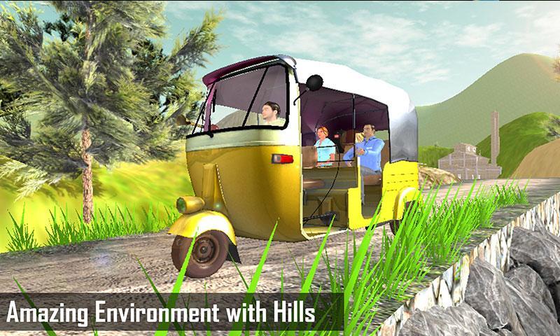 Tuk Tuk Crazy Rickshaw Driver Simulator 3D is a fully packed game of driving which include speed driving, parking, animated characters, Pick and Drop services in hilly mountain areas.