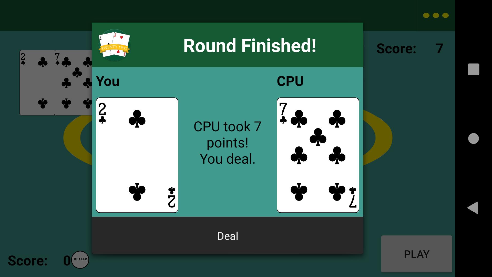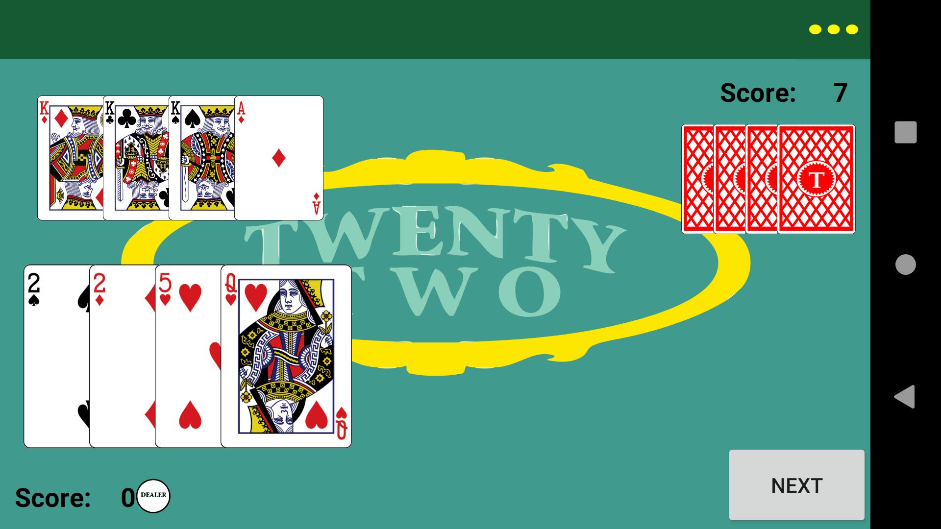 Когда игрок набирает 22 или более очков, игрок с самым низким выигрышем!