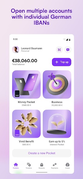 Правильное приложение для всех ваших потребностей. Откройте Vivid бизнес для компаний и фрилансеров, или Vivid личный счет для отдельных лиц.