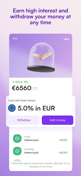 *Акция действительна в течение первых 2 месяцев после открытия процентной счета или кармана процентных ставок. После того, как вы получите обычную процентную ставку в соответствии с вашим планом. Эта ставка применяется к средствам до 10 миллионов евро.