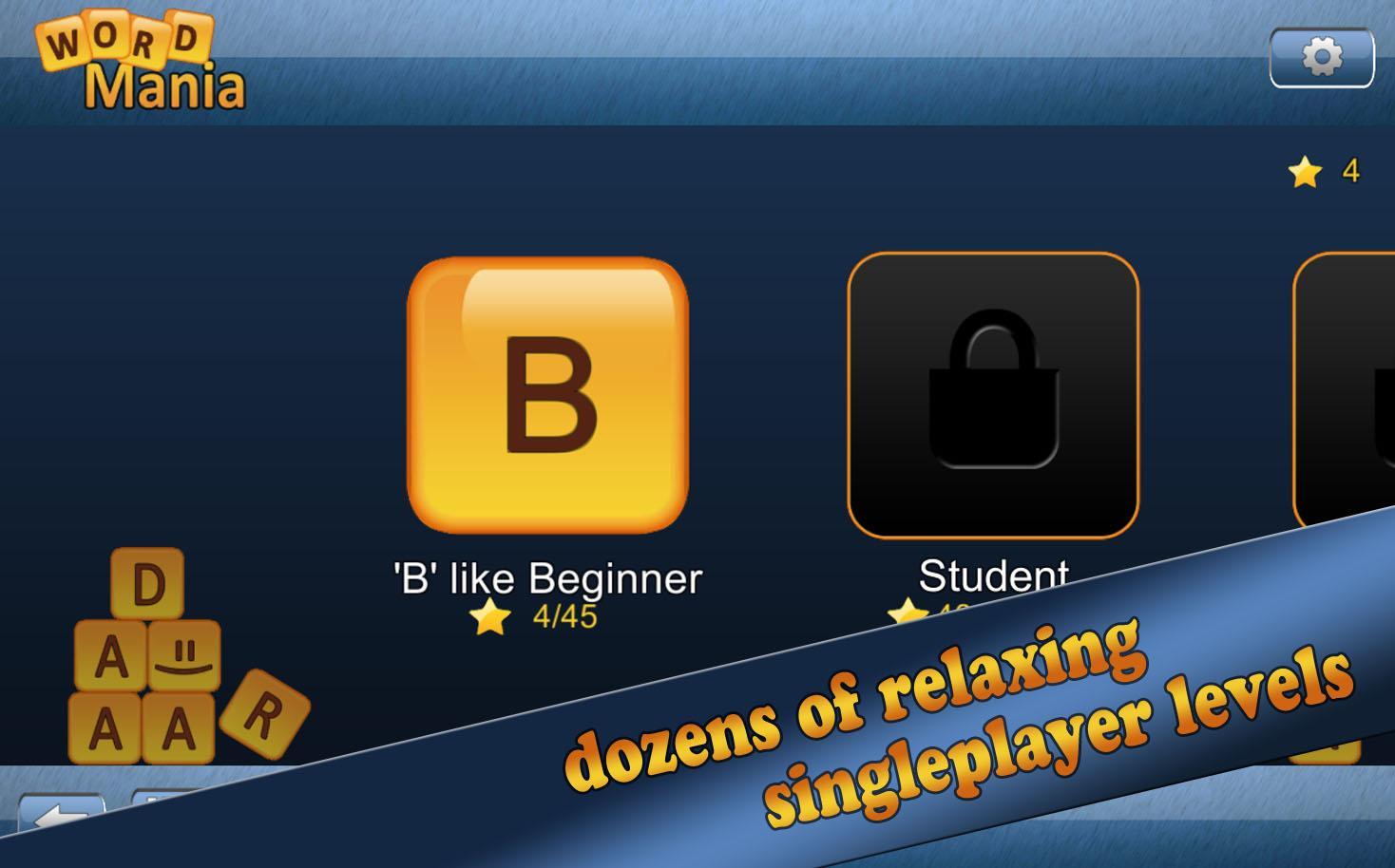 Шестнадцать букв доступны, чтобы собрать все возможные слова. Тренируйте словарный запас и вычислите последнее слово из вашей памяти, вам понадобится он, чтобы справиться с сложными 75 уровнями в режиме одного игрока без ограничения по времени.
