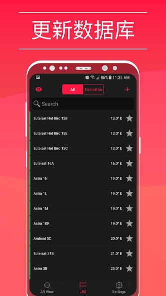 Direct your device to the sky and look in realty augmented mode at the geostationary satellites orbiting around the earth. You will have access to an updated database of more than 200 satellites with a research option capability to facilitate your search.