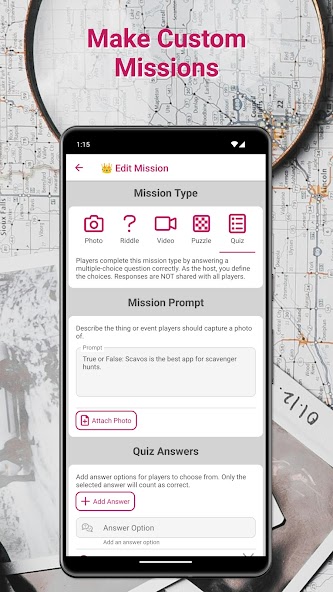 - Riddle & Quiz Missions: Add a twist to your hunt with riddle and quiz challenges that engage players' problem-solving skills.