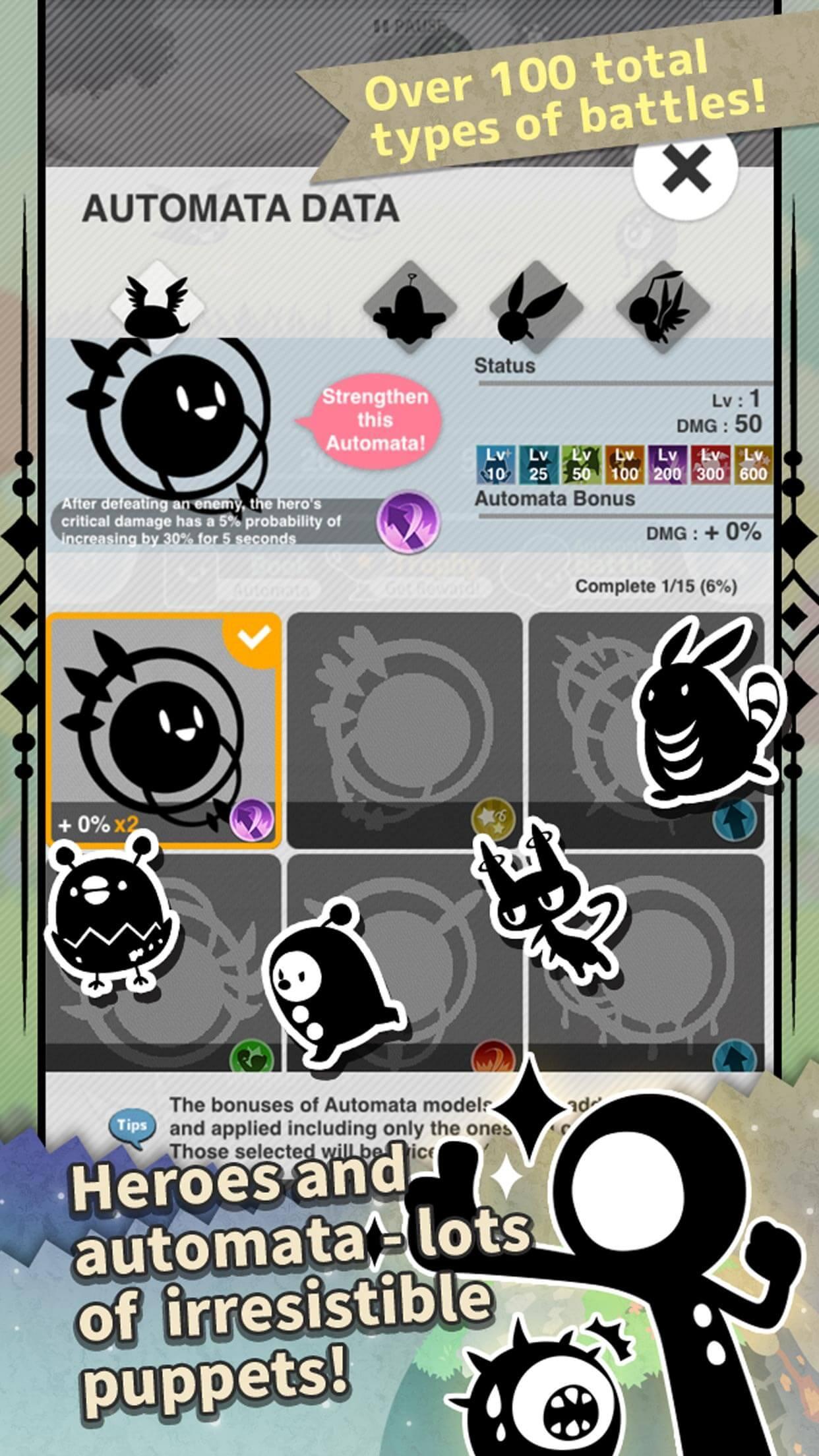 Borrow the strength of the auto-attack puppet ""Automata"" and progress to the next areas!