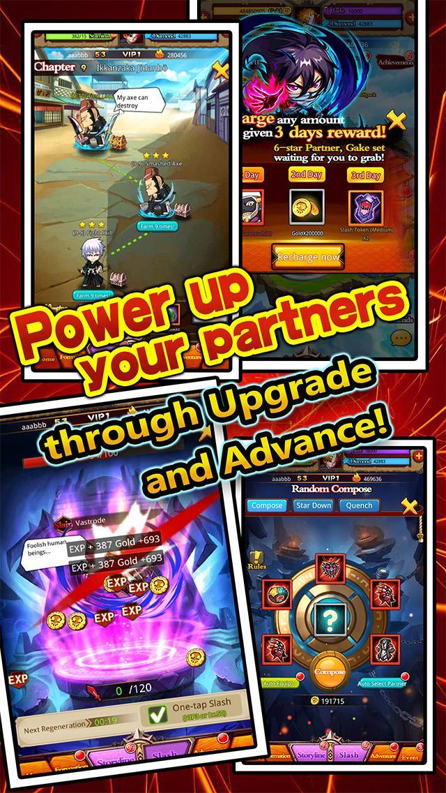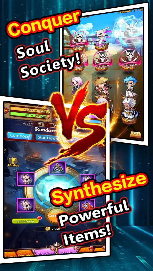 Summon Shinigami you want. Combine to higher rank partner. Get more powerful partners.