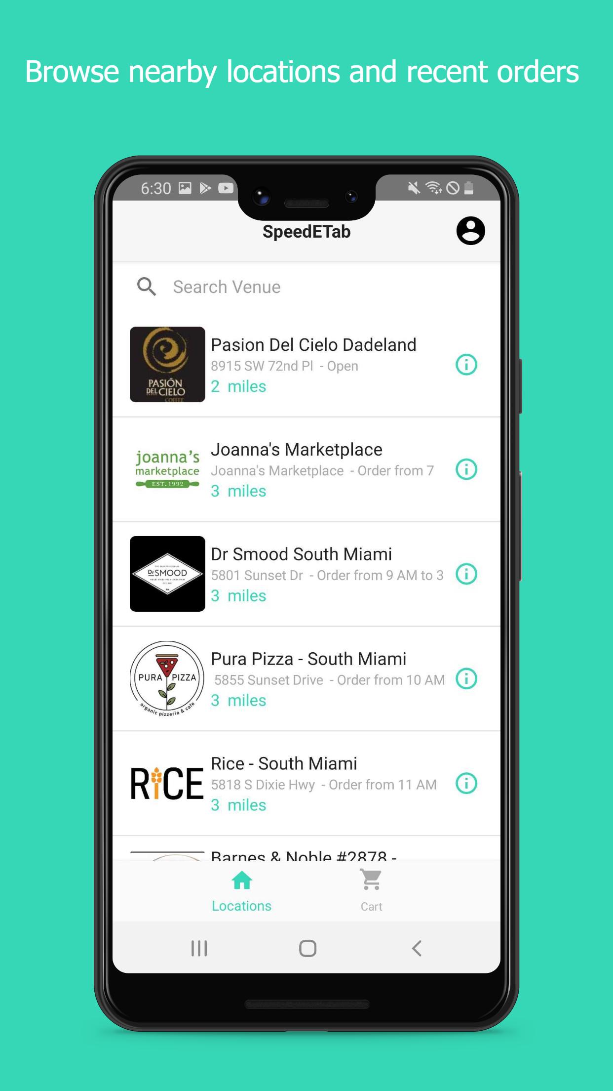 SpeedETab is the easiest way to order and pay for items at your favorite venues -- no wallet necessary! Whether you’re in a rush for that morning coffee, can’t wait in line for those tacos, or just don’t want to deal with the the line, SpeedETab is the answer you’ve been looking for.