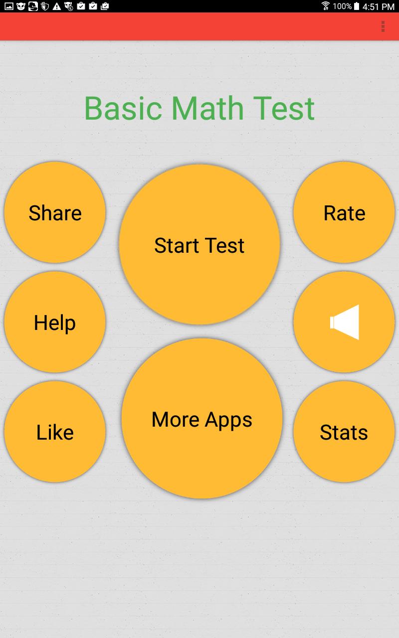 Basic Math Test เป็นเกมที่สนุกการทดสอบคุณเกี่ยวกับคณิตศาสตร์ขั้นพื้นฐาน เกมนี้เป็นเกมคณิตศาสตร์การศึกษาที่ยอดเยี่ยมสำหรับเด็กที่เรียนรู้คณิตศาสตร์วัยรุ่นและผู้ใหญ่ เกมนี้ประกอบด้วยการเพิ่มการลบการคูณและการหาร ทดสอบทักษะคณิตศาสตร์พื้นฐานของคุณ! เสร็จสมบูรณ์โดยไม่ต้องใช้เครื่องคิดเลข