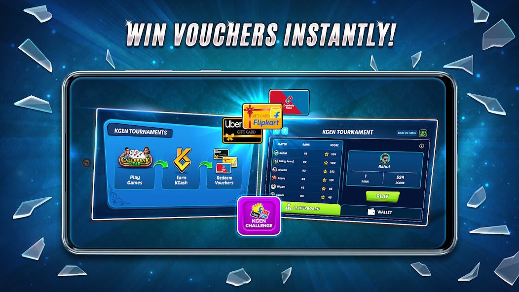 ตอนนี้การเล่นเกม Call Break เป็นรางวัลมากกว่าที่เคย! รับบัตรกำนัลคูปองในขณะที่เล่นและไถ่ถอนผ่านแพลตฟอร์มต่างๆ แข่งขันในกิจกรรมลีดเดอร์บอร์ดรวบรวม kcash และใช้มันใน Kstore เพื่อรับไอเท็มในโลกแห่งความจริง! เล่นชนะและเพลิดเพลินกับเกม Callbreak ที่น่าตื่นเต้นด้วยรางวัลจริง!