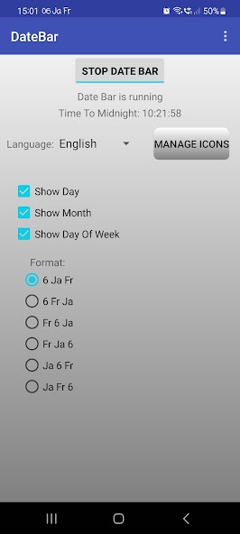 แอพขนาดเล็กที่จะแสดงวันที่ปัจจุบันเป็นการแจ้งเตือนในแถบสถานะ