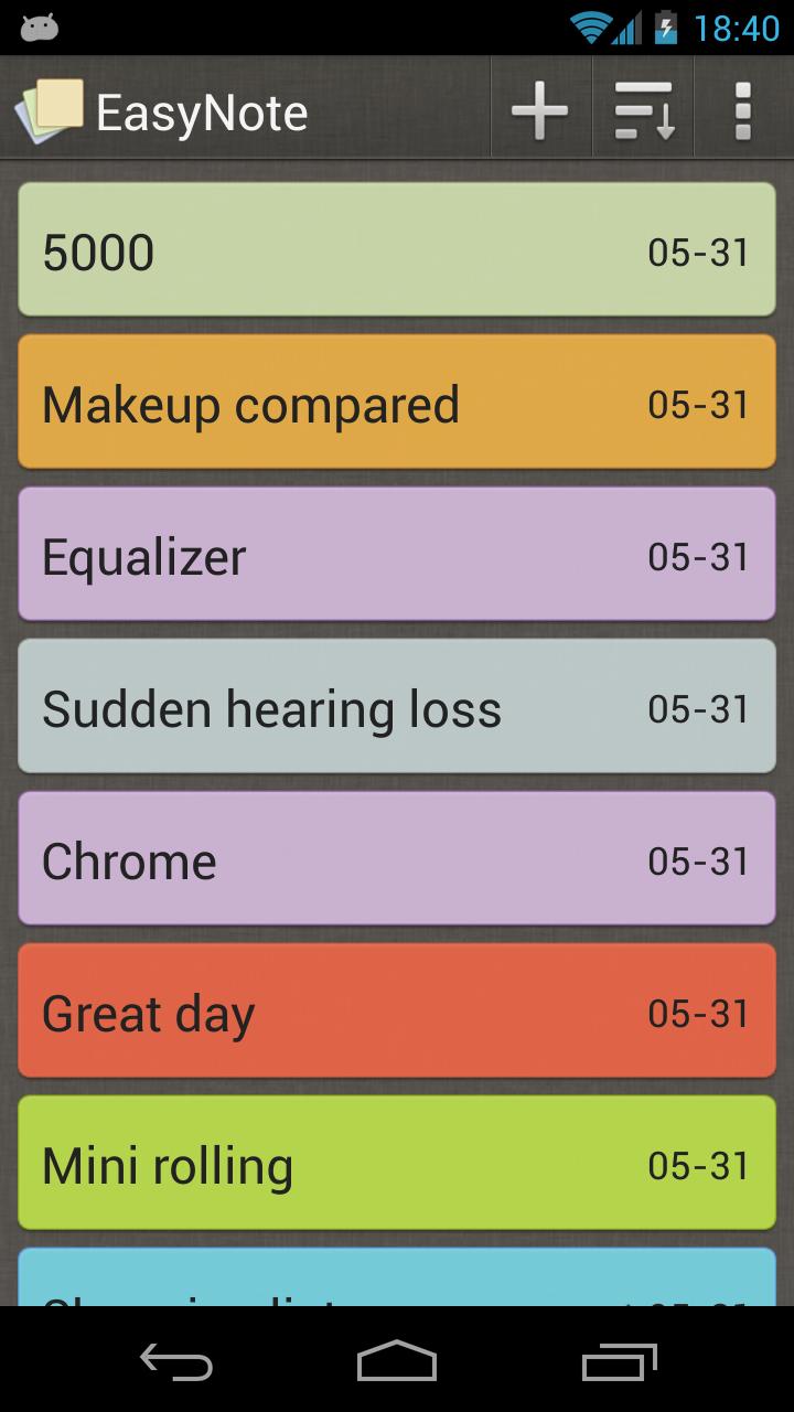 EasyNote ช่วยให้คุณสร้างโน้ตได้อย่างรวดเร็วและโน้ตเป็นรหัสสีเพื่อให้คุณสามารถค้นหาได้ทันที เคยมีความคิดและความคิดที่แฟลชผ่านใจของคุณหรือไม่? นำพวกเขาลงในบันทึกย่ออย่างรวดเร็ว ติดตามตารางเวลาประจำวันและสิ่งที่ต้องทำ จัดระเบียบรักษาความคิดของคุณและปรับปรุงประสิทธิภาพการทำงาน EasyNote ช่วยให้คุณจดบันทึกสร้างรายการที่ต้องทำบันทึกรายการช้อปปิ้งและทำให้บันทึกเหล่านี้สามารถค้นหาได้อย่างสมบูรณ์