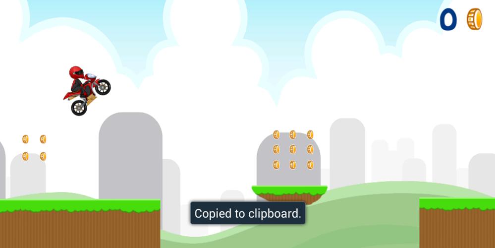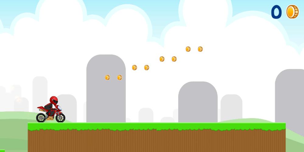 เมื่อคุณเปิดเกมนี้เพียงแตะครั้งเดียวบนหน้าจอเพื่อกระโดดอย่างง่ายด้วยจักรยานของคุณหรือแตะอีกครั้งเมื่อคุณอยู่ในอากาศเพื่อสร้างแบ็คพลิกที่เย็นสบายด้วยมอเตอร์ไซค์ของคุณ วัตถุประสงค์คือการจับเหรียญทั้งหมดที่คุณสามารถทำได้ก่อนตาย ระวังด้วยหลุมหินและหินที่พวกเขาสามารถฆ่านักขี่จักรยานของคุณได้ง่าย