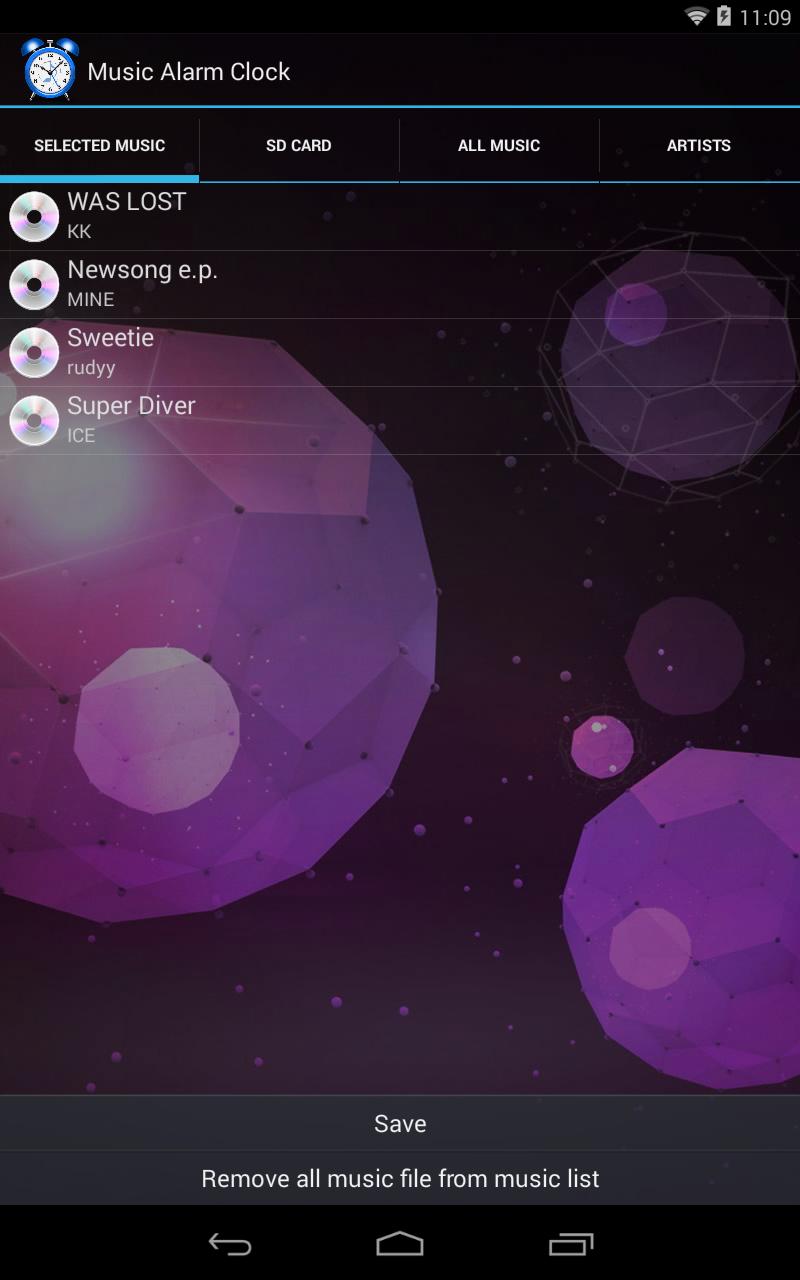 หากคุณเพิ่มไฟล์เพลงในรายการคุณสามารถตื่นขึ้นมาในเพลงโปรดของคุณหรือเพลงสุ่มจากศิลปินการ์ด SD หรือเพลงทั้งหมดในโทรศัพท์ของคุณ