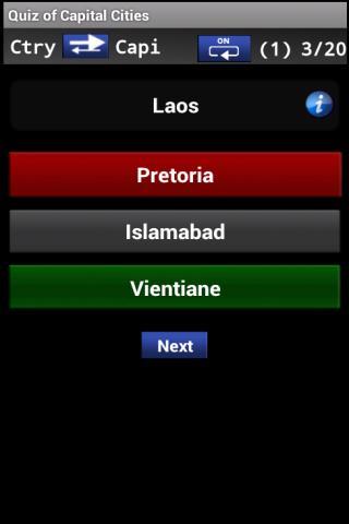 ด้วยการคลิกปุ่มสีน้ำเงินที่ด้านบนซ้ายคุณสามารถสลับทิศทางของแบบทดสอบ (ประเทศและเมืองหลวง)