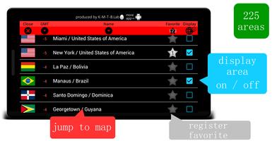 พื้นที่ที่ลงทะเบียนจะถูกเพิ่มเข้ามาแล้วเวลาจะแสดงเป็นนาฬิกาดิจิตอลจากแผนที่โลกโดยการสัมผัส