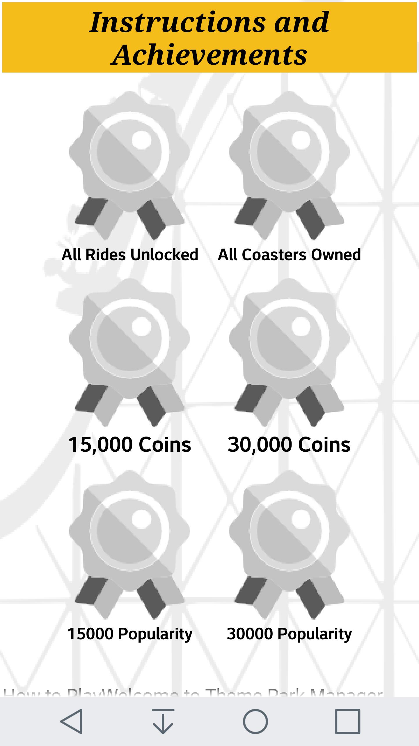 Test your skills and see if you can develop the greatest theme park, unlock all the attractions and become the ultimate theme park. Just remember, as coasters get older they cost more and more to maintain, they don't earn money for ever... Keep developing and upgrading/replacing where required.