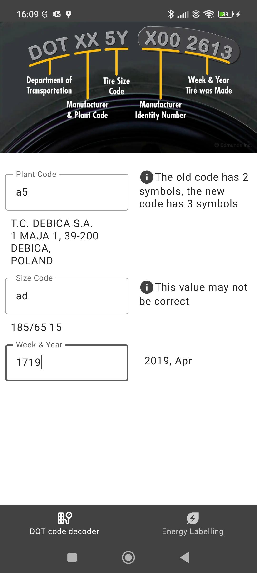 Tires DOT code, Energy Labeling, energy efficiency, wet grip, noise rating