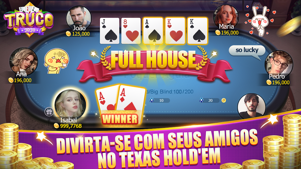 Truco JOJO is a completely free game that you can play with your friends or players across the country anytime, anywhere. In addition to the classic Truco games, you can also play popular games like Texas Hold'em, Crash and Slot here. You can challenge players from different countries, or invite your family and friends to play this famous Brazilian card game anytime, anywhere!