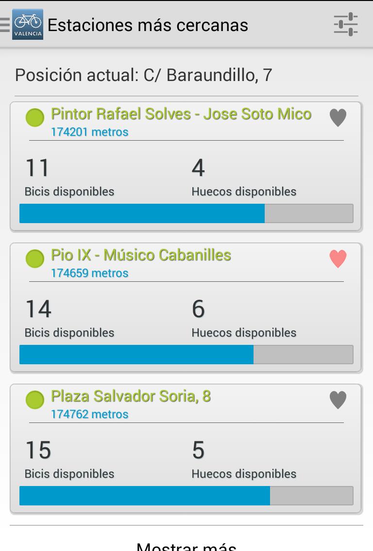 You can also filter the stations to be shown based on the availability of bicycles, free spaces or a system of favorite stations.