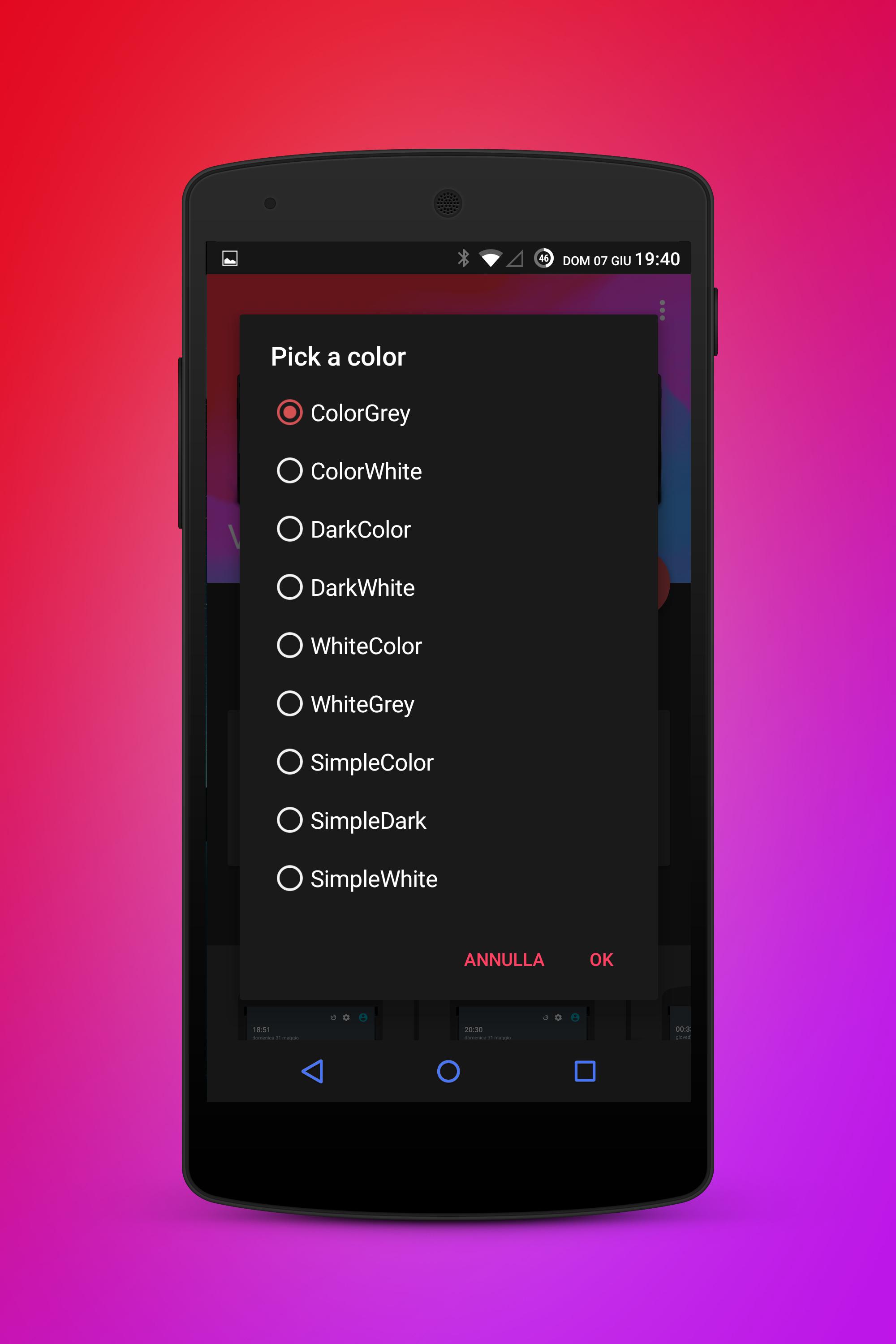 Thanks to the fantastic wrapper of Niklas Schnettler now you have all the colors in a single app, and you can choose the one that suits you best!