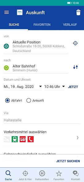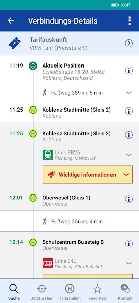 Your free public transport navigation system in the Rhein-Mosel area.