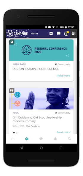 On Campfire you can connect with Members of other Girl Guiding and Girl Scouting Associations and World Association of Girl Guides and Girl Scouts (WAGGGS) volunteers. You can also interact in English, Spanish, Arabic French to partake in WAGGGS programmes, educational courses and share best practices with other Girl Guides and Girl Scouts across the world!