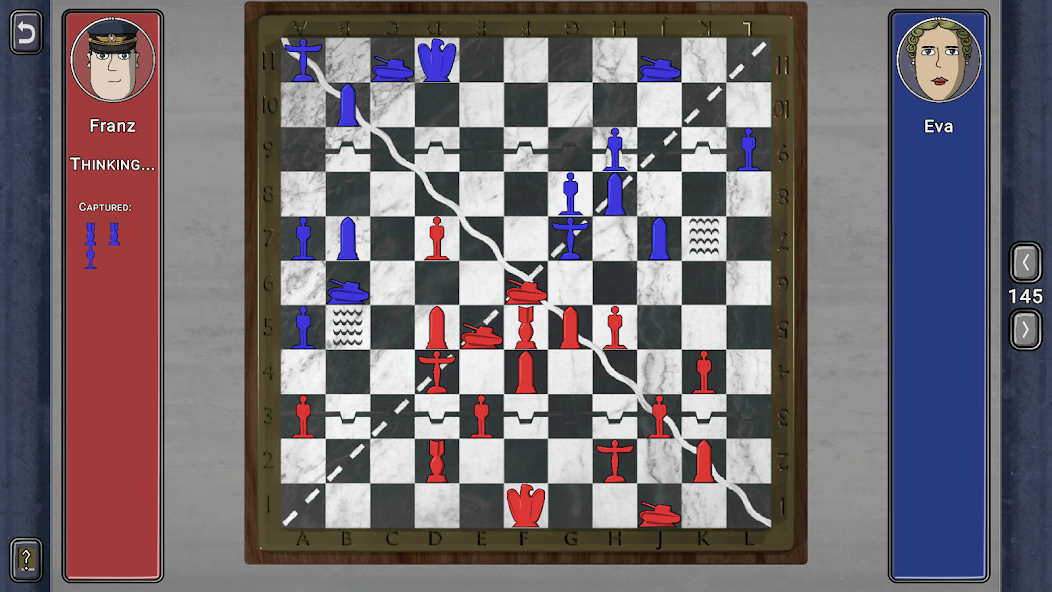 Played on a 11x11 squares board with 18 pieces of 5 different types each war party strives to fulfill one of the various goals to win the battle. Will you aim to destroy the enemy infantry or to conquer their main base? Adopt your play to the strategy of your enemy and crush him.