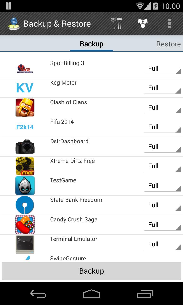 您只有两个屏幕用于备份操作,另一个用于恢复操作。设置屏幕以启用列出系统应用程序。