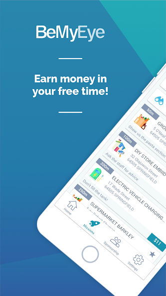 是否想找到简单而快速的工作来在空闲时间赚钱?立即下载BeMyEye应用程序,发现周围可用的任务。