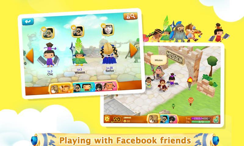 您将通过一个精美的3D世界进行冒险,陪伴不仅是通用NPC的好友 - 它们是您的Facebook朋友创建的计算机控制角色!