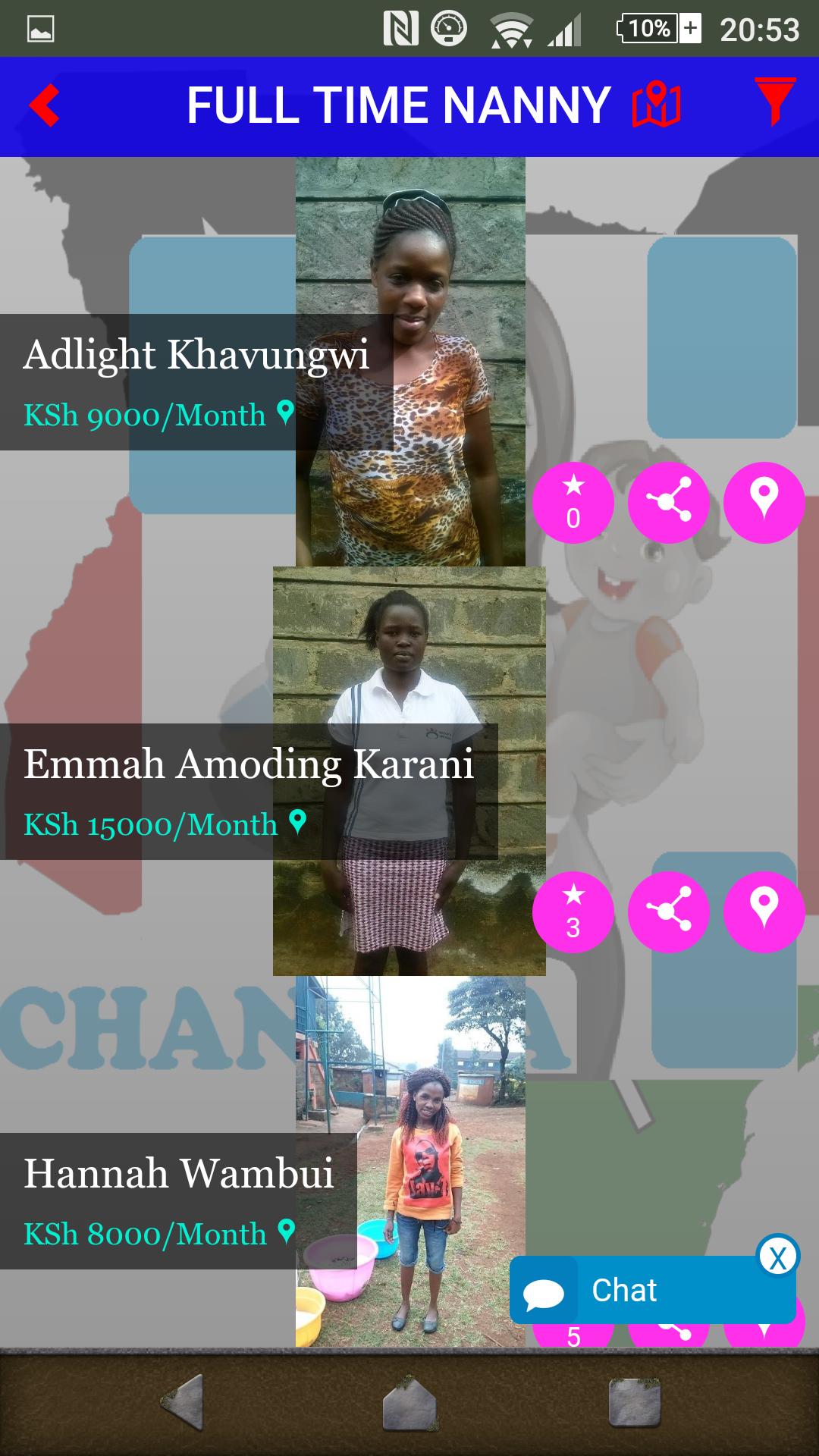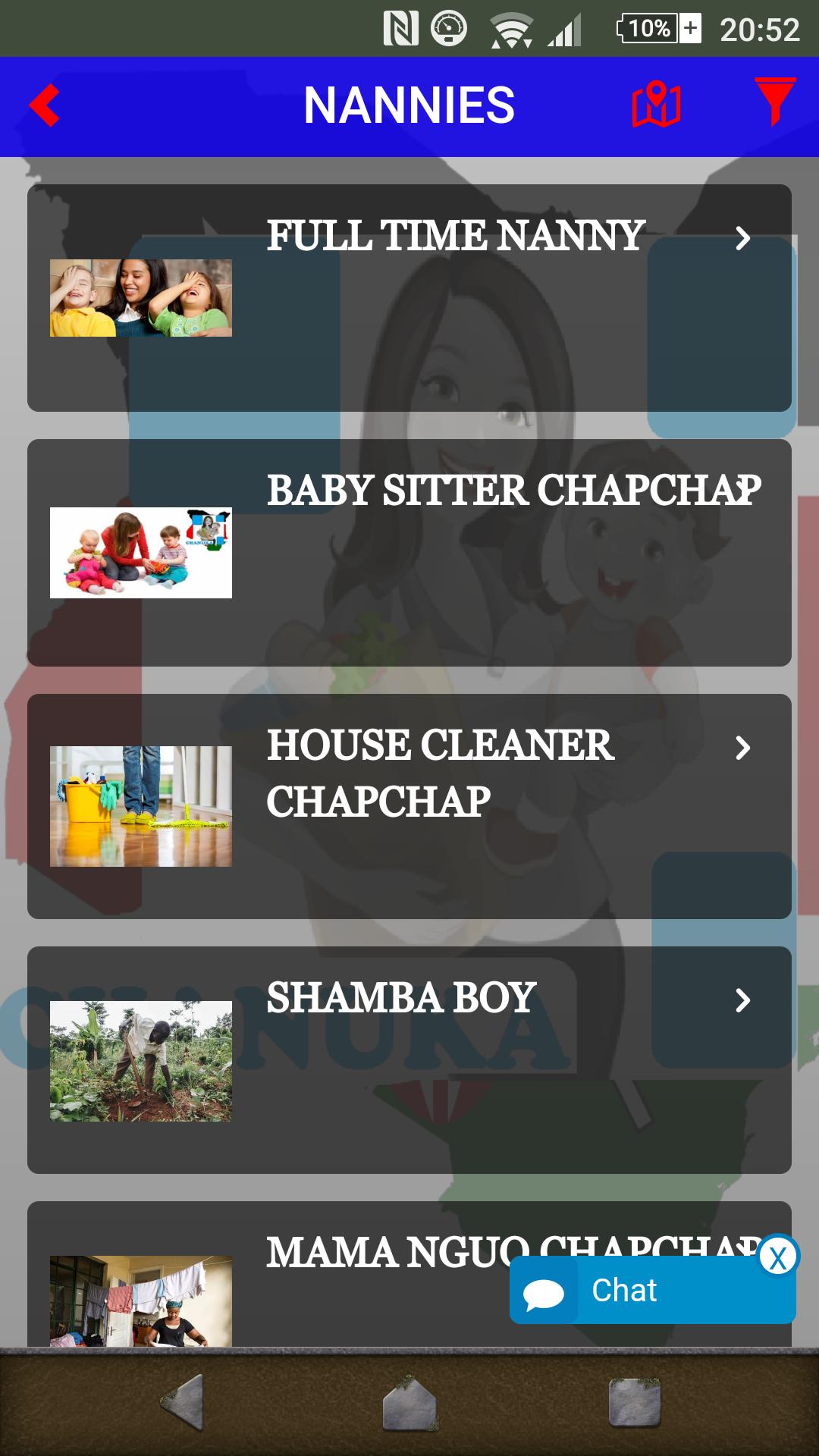 CHANUKA的建立是革命性的家庭护理的唯一目标。我们通过CHANUKA应用程序提供了一个有效的平台,在该应用程序中,房主可以找到专业的保姆,从全职保姆,保姆,房屋清洁工,Shamba Boy,Mama Nguo等。低至ksh 100至1000/=您可以要求选择保姆。