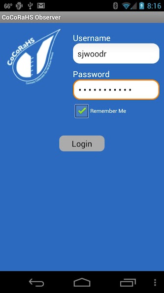 Android的CoCoRaHS Observer是一个应用程序,可以通过其Android移动设备提交注册的志愿者观察者提交其每日降水报告。此外,用户可以查看过去的报告以确保准确性。