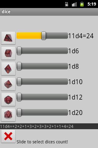 它支持D4,D6,D8,D10,D12和D20 DICE,您可以设置它们的号码并查看日志!