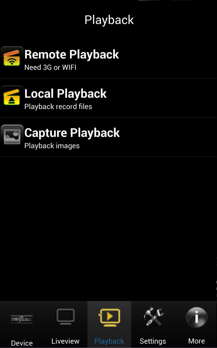 DVR5A是DVR的综合监控和管理移动客户端,它将功能集成如下: