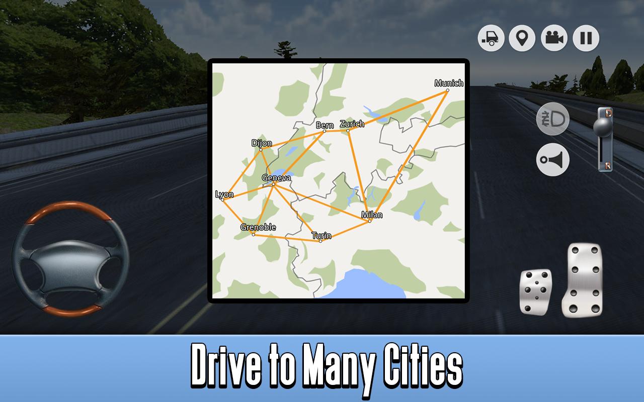成为欧洲卡车司机。访问德国,法国,瑞士,奥地利和意大利!选择货物并驾驶它。将货物运到城市仓库。升级卡车以更好地驾驶。驾驶员在服务站修复并加油。避免驾驶货物高于速度限制,请遵循运输驾驶规则。明智地花钱。享受日夜驾驶模拟器。