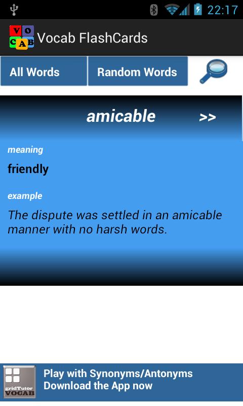 这是一个很好的词汇构建器,可以改善您的VOCAN考试,例如GRE,SAT,PSAT,ACT和GMAT。让您在旅途中学习。
