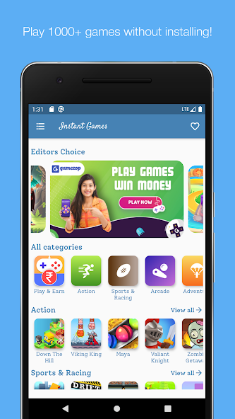 Instant Games是您所有游戏本能的一站!随时随地,您的手机上的1000多个游戏都与1000多个游戏一起骑行!