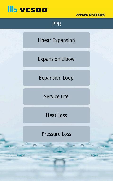 PP-R管道和配件的计算程序。另外,您可以找到螺旋型PVC-U管道的液压和静态计算。从现在开始,您不需要通过写作来计算最难计算。它易于使用。所有数据都有其中。只需选择正确的输入即可计算。