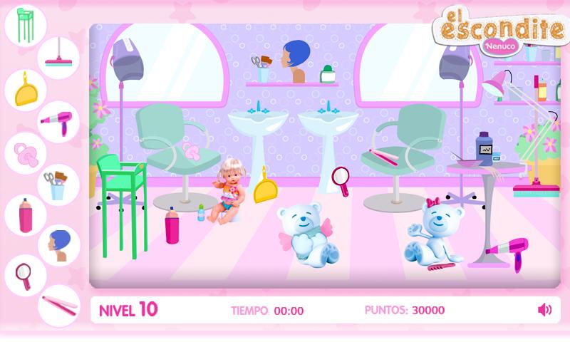 下载此游戏并帮助Nenuco在每个屏幕上找到隐藏的对象。有很多水平!操场,生日聚会,卧室,厨房……您要做的就是在您的时间用完之前在每个级别中找到10个隐藏的物体。您走的速度越快,要获得的要点就越多,因此请继续尝试,直到您成为前十名中最好的。