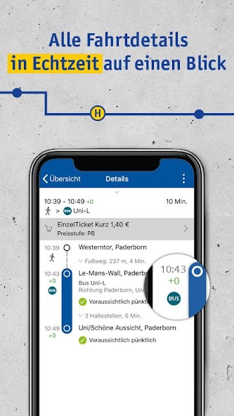 您可以快速,灵活和通过电子购买来节省一张票约20%。在Paderborn Urban地区(价格水平PB),您可以使用时间表应用程序以数字方式购买以下门票:短途,短途儿童,单票,儿童票,24小时门票PB和家庭日票。门票可以直接购买或从时间表信息购买。