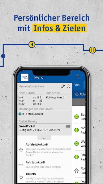 个人区域可确保您始终关注您最常使用的公共汽车连接:在此处存储的日期,停止和位置可以单独适应您自己的需求。