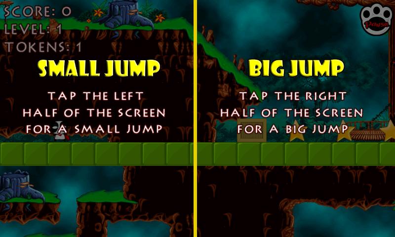 - 点击屏幕的右半以进行大跳跃