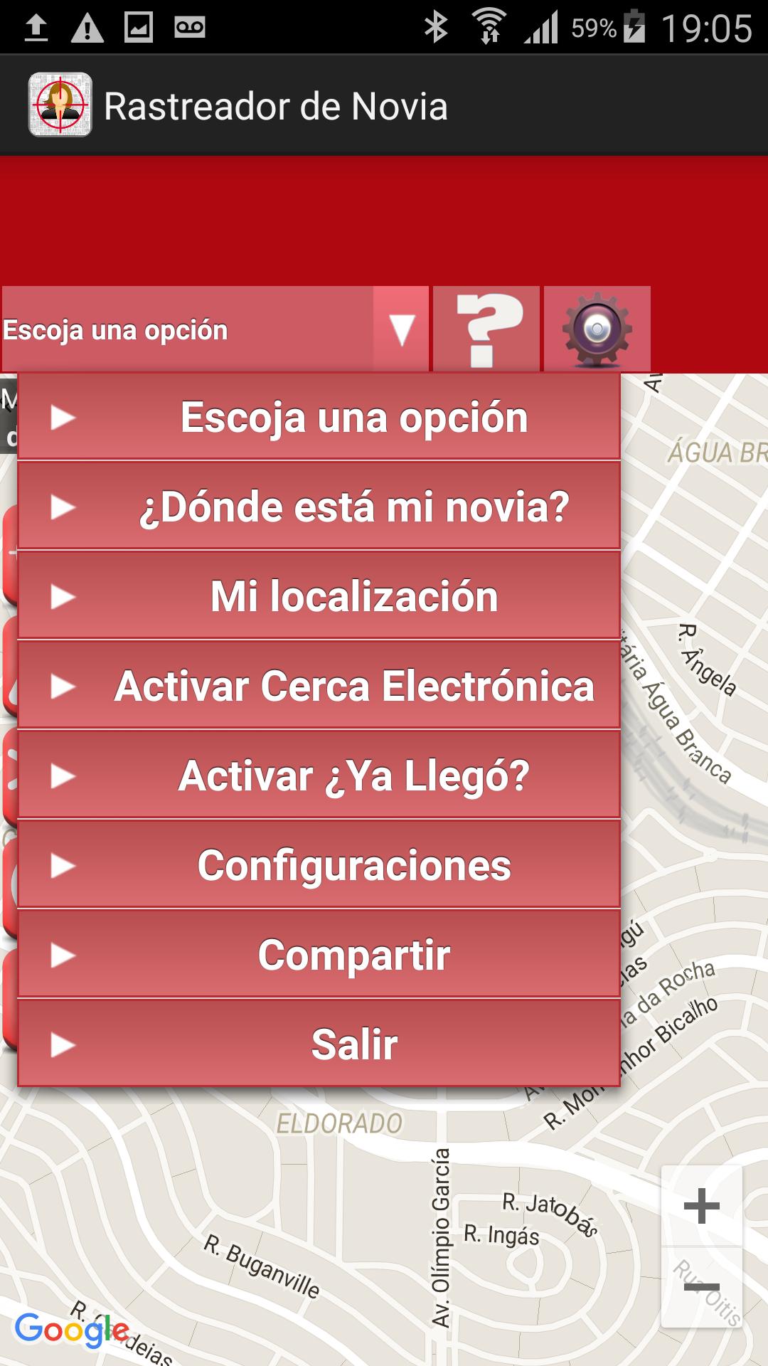 这很容易。您和您的女友安装了Rastreador de Novia应用程序。 (或者如果女友更喜欢,她可以安装Novium Tracker版本)。您激活追踪器,女友激活她并准备好了。一旦激活了跟踪器,您就已经连接了,并且很容易知道彼此的位置。