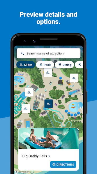 •发现公园设施,包括幻灯片,游泳池,小屋和餐饮