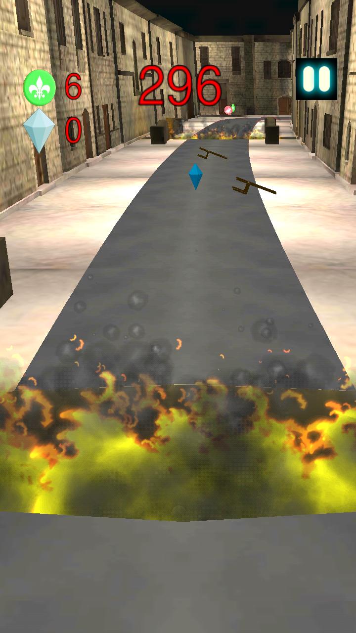 您不能從城堡的高牆越過或跳過。因此,您必須快速跑步才能從城堡中逃脫,而途中有很多障礙 /障礙,例如椅子,火,滾動岩石,天花板燈籠,扇形和木製柱子,可以躲閃。