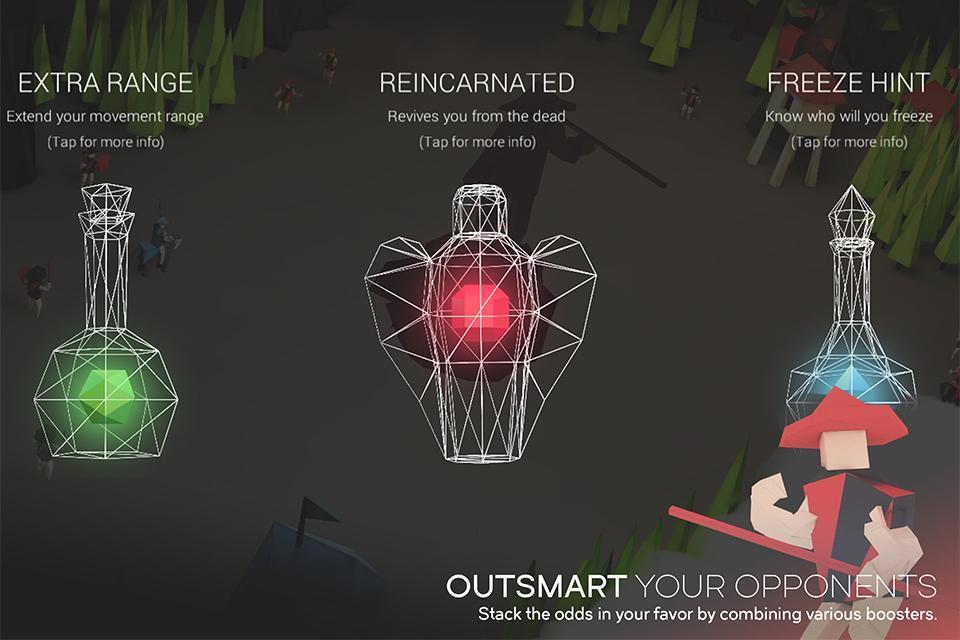 基於轉向的實時多人遊戲,您有5秒鐘可以決定下一步,在各種基本力量之間進行選擇。每個回合,您都必須弄清楚是否會進行激烈的比賽並進行攻擊,還是通過恢復健康,使自己看不見或施放咒語來凍結對手。最重要的是,您必須注意不要妨礙其他玩家的咒語和攻擊。