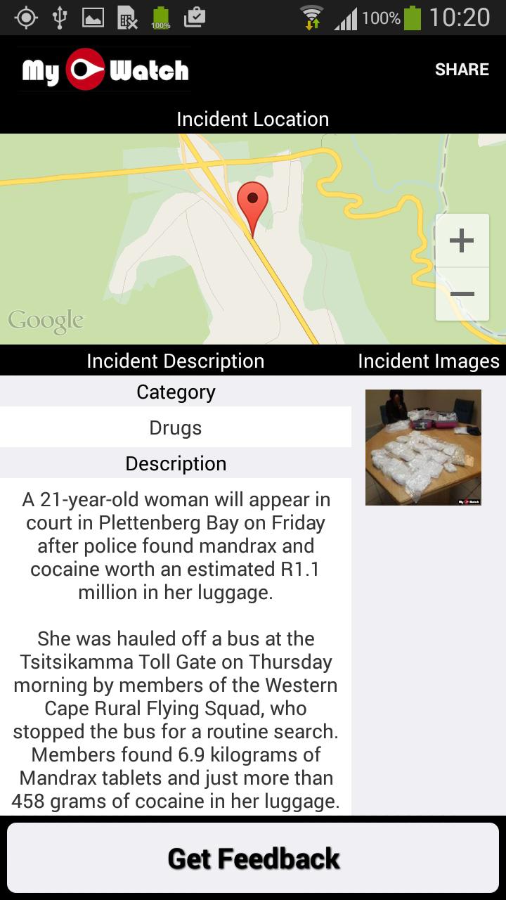 MyWatch還將將所有與犯罪相關的數據傳遞給相關當局,並通知報告事件的用戶,內容是由於通知而發生的任何決議或行動。