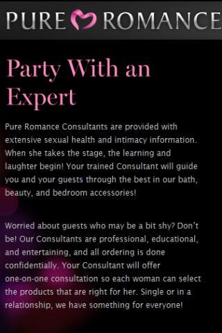 Pure Romance提供產品,使您感到美麗,自信和性感。我們的產品包括教育書籍,感性按摩物品,內衣甚至臥室玩具。借助此新應用,您可以看到您所有喜歡的產品並了解我們最新的收藏。在線購物或舉辦您自己的聚會!加入我純粹的浪漫團隊,通過兼職時間賺取全職收入。