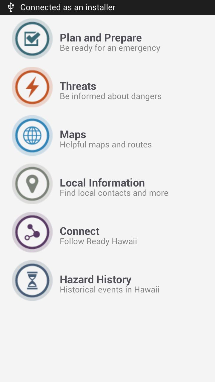 這是夏威夷的官方緊急準備申請。它的目標是為夏威夷居民提供全包,奇異的移動資源,以便在緊急情況下和發生緊急情況之前訪問準確,及時的信息。