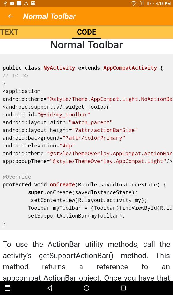 versatile Toolbar是不同工具欄活動的示例工具欄,例如沒有動作欄,簡單工具欄,折疊工具欄,工具欄自定義標題和浮動工具欄。有關工具欄上的Android教程作為圖形和帶有源代碼的文本視圖。