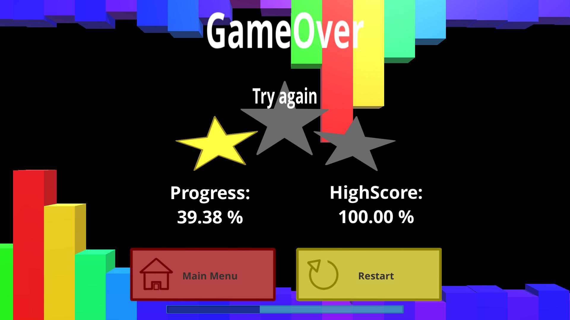從您的音樂庫中選擇一首歌。該級別將根據您選擇的音樂構建。級別的頂部和底部由垂直的彩色條組成,這些條形轉向音樂節奏。球員的目標是在不擊中任何條形的情況下將球體移動到水平上。